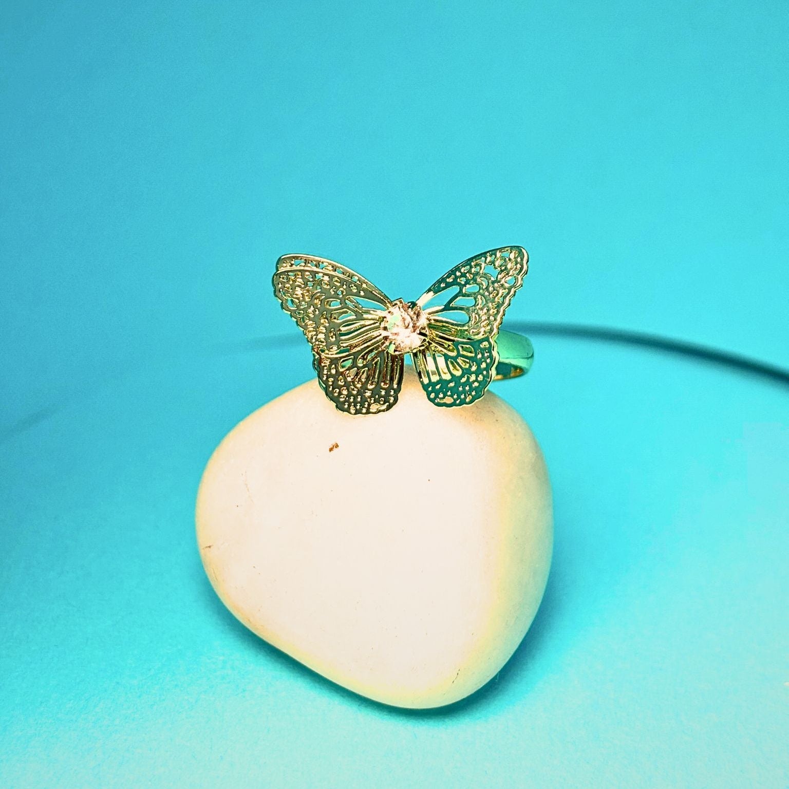 Inspired by the fleeting beauty of a butterfly’s dance, the Wings of Grace Ring captures a moment of motion in golden stillness. Its sculpted wings stretch delicately across your finger, with a soft gleam that flutters in the light. A fine crystal at its heart brings just enough shimmer, a quiet sparkle that speaks volumes.